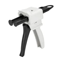 - Place the opened cartridge in the gun and pump until adhesive flows from both chambers. This ensures proper alignment of the pistons. Then attach the mixing tube to the cartridge.